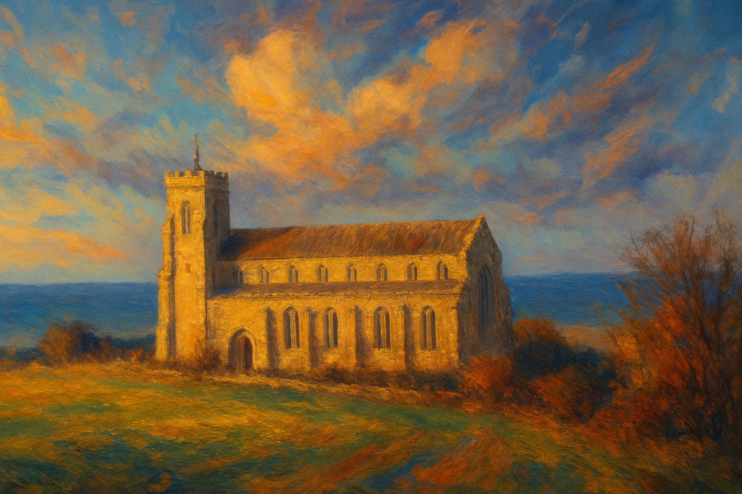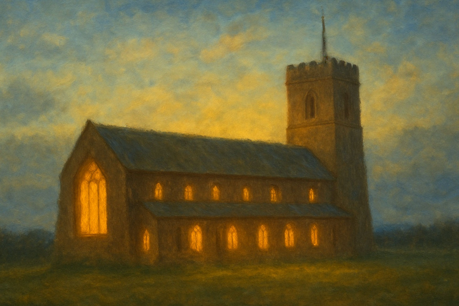 Last Light: As the last traces of daylight settle on the stone, the church gathers its own light from within — calm, steady, timeless.