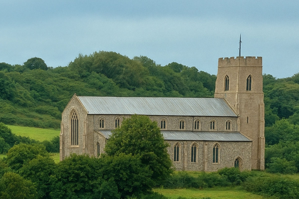 Salthouse Church. A balanced mid-distance north elevation portrait.